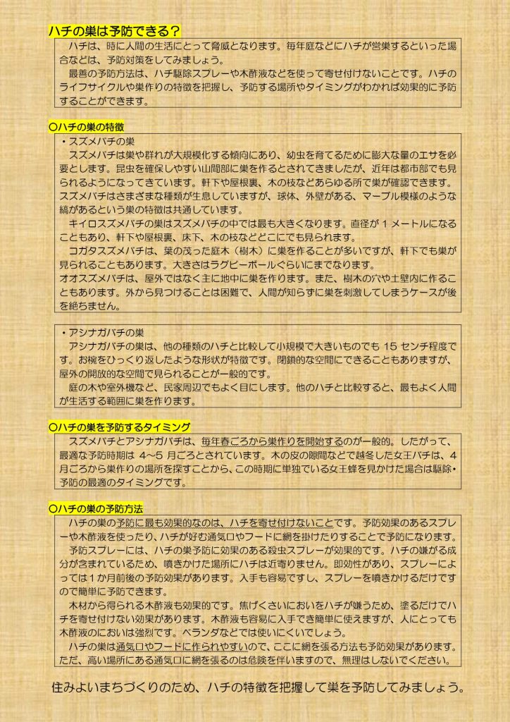 スズメバチの被害にお困りの方がいらっしゃいましたら、